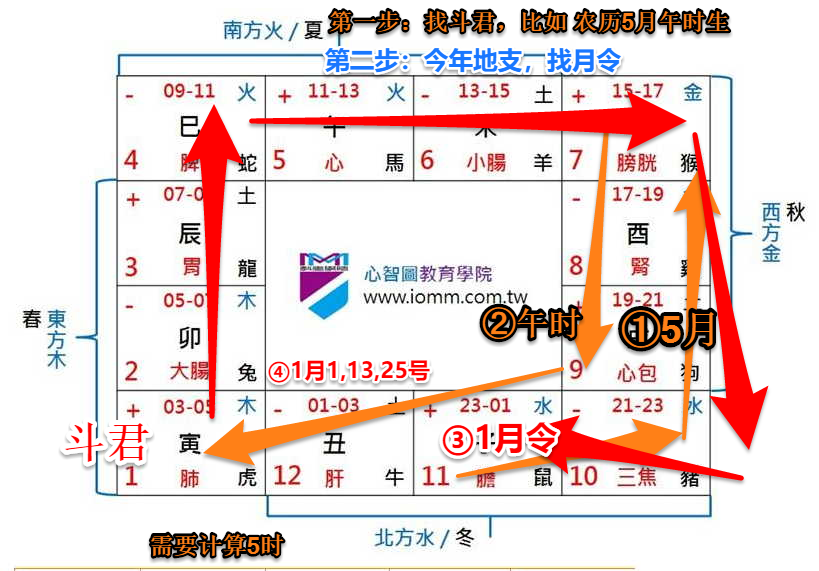 月斗君:本流年斗君所主的宫位,即为本年正月所主之宫位,即为本年正月所主之宫位,依次顺行到本年之十二月,